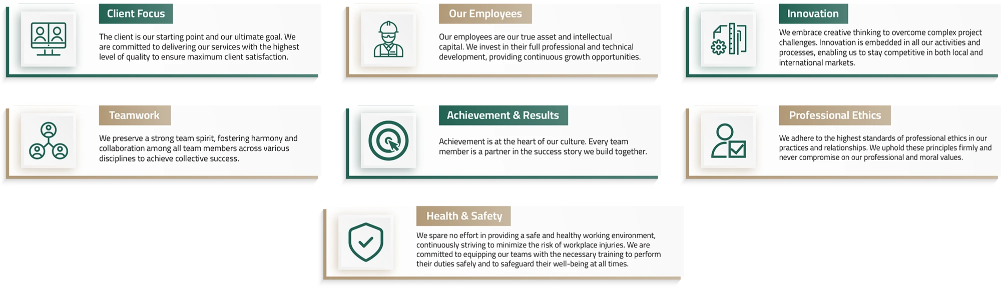 To become the leading company and the first choice in general contracting and electromechanical works delivering innovative, sustainable solutions and executing high-quality projects that contribute to building a modern urban future aligned with the ambitions of Saudi Vision 2030.